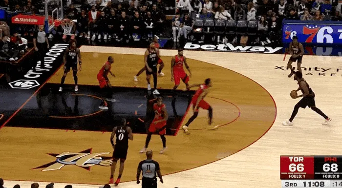 NBA常規賽,76人對陣猛龍的埃奇比賽正在進行中。