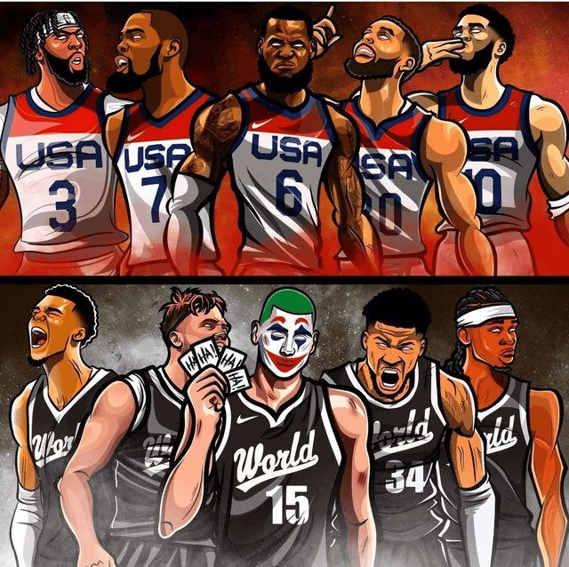 世界隊有文班亞馬、東契奇、約基奇、阿德托昆博和吉爾杰斯-亞歷山大。