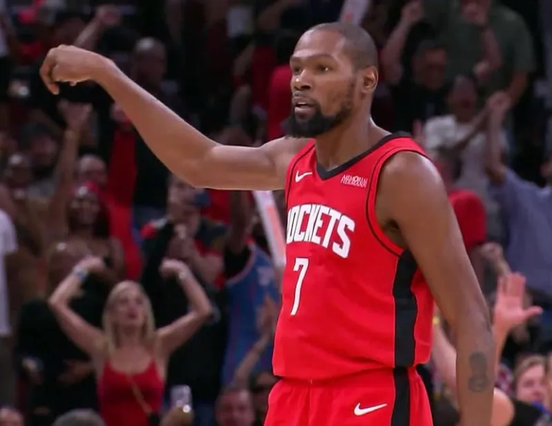 本場比賽,火箭球員凱文-杜蘭特出戰45分鐘,24投13中,其中三分球8投2中,罰球7投7中,得到35分5籃板6助攻1封蓋。