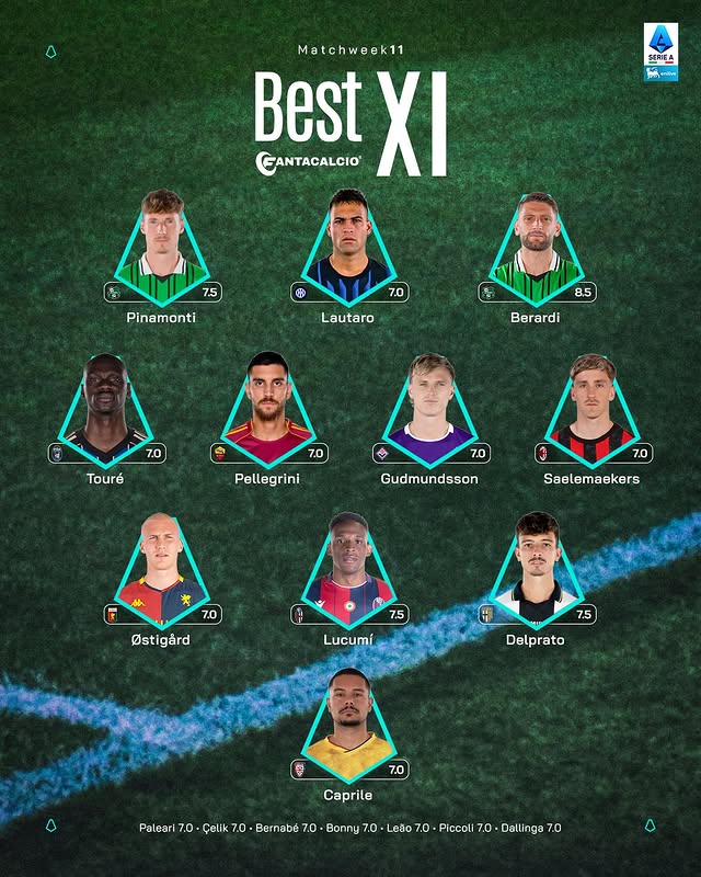 虎撲11月10日訊 意甲官方公布第11輪陣容,勞塔羅領銜,薩入貝拉爾迪、流言輪最領銜薩56入選: