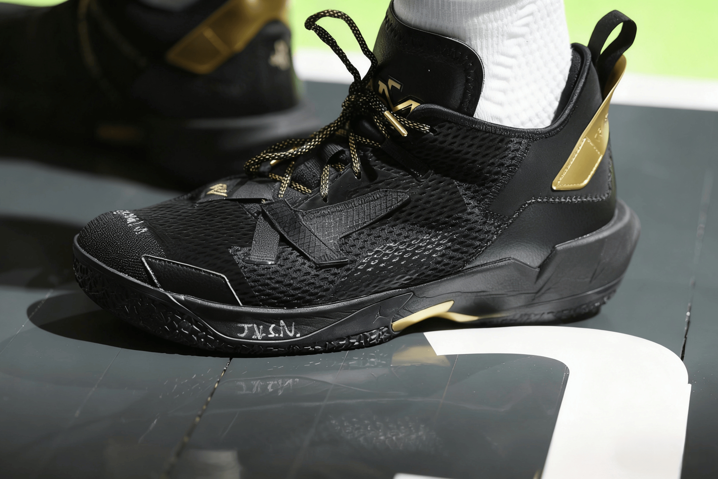 比賽中,分板威斯布魯克上腳Jordan Why Not Zer0.4“BHM”PE。流言魯克