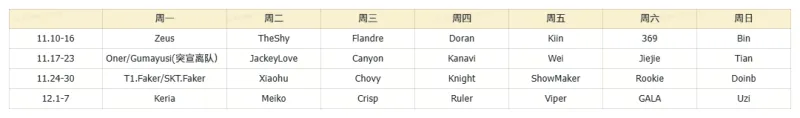 1. 四周每日一期,評選一個知名選手的招牌招牌英雄,候選池為其生涯使用次數較多,或令人印象深刻的英雄。