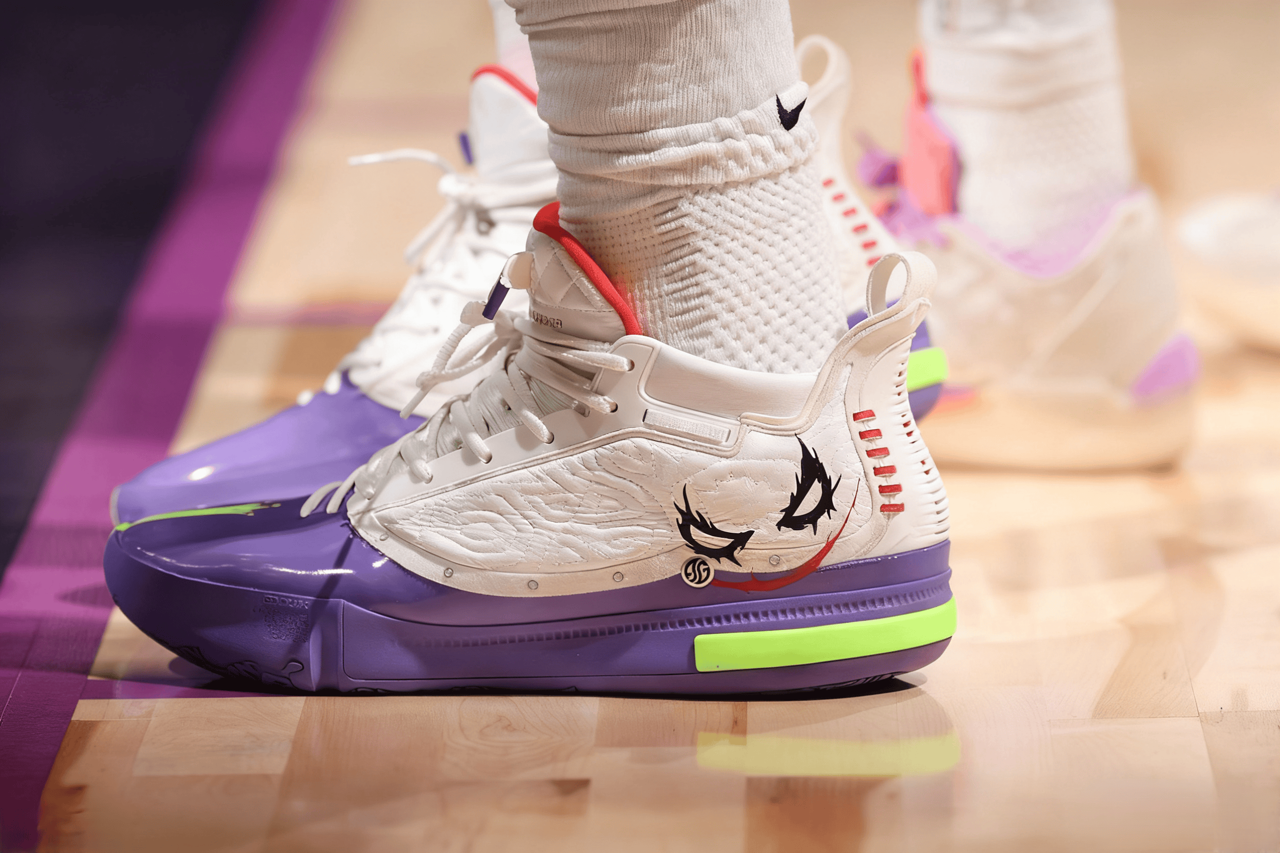 比賽中,登穿戈登上腳個人專屬小丑配色361° Joker1GT PE。人專