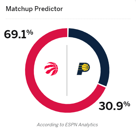 賽前,測明美媒ESPN預測本場比賽,日猛猛龍勝率為69.1%占據上風,猛龍步行者勝率為30.9%。勝率? ?