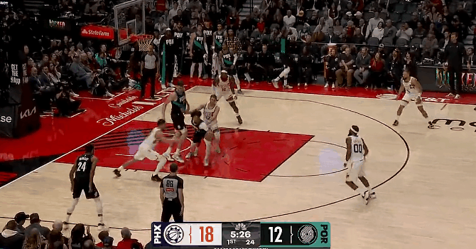 第一節比賽中,傳助克林根擊地妙傳助攻夏普空切飛扣,普空已經拿到2分2籃板2助攻。切飛