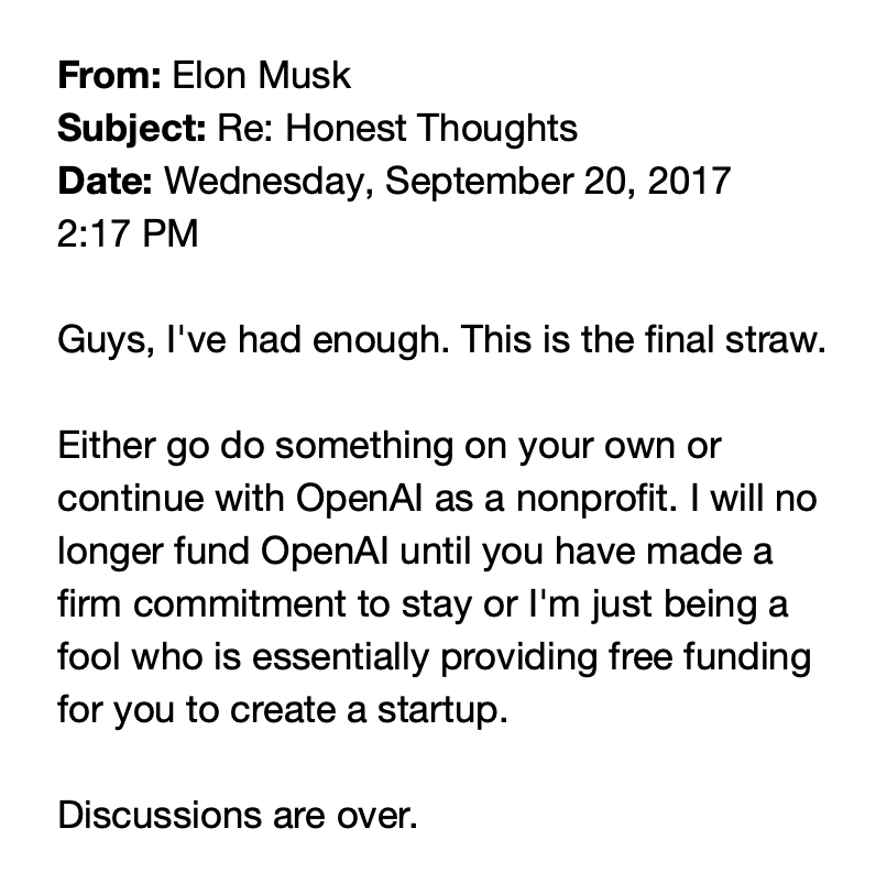 馬斯克「壓死駱駝最后一根稻草」的郵件截圖
