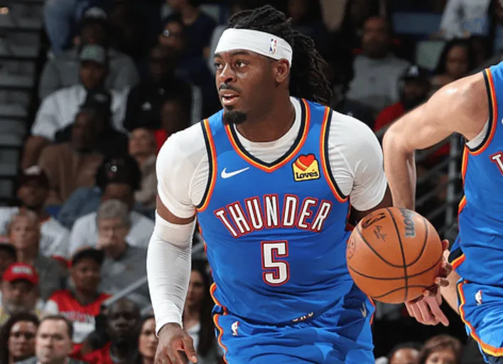 本場比賽,雷霆球員呂岡茨-多爾特投籃9中5,三分6中4得到17分1板1助1斷1帽。
