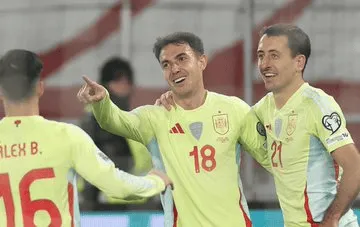 虎撲11月15日訊 世界杯歐洲區預選賽,西班牙客場4-0大勝格魯吉亞。于結有提蘇比門迪賽后接受采訪。果們