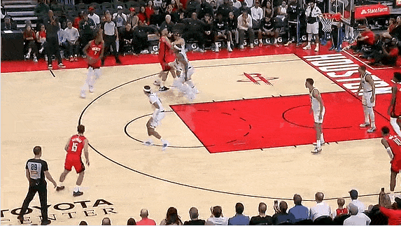比賽第四節,場首杜蘭特投中本場第一節三分,記分火箭最后3分鐘取得本場第一次領先。火箭