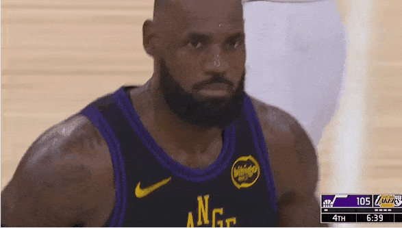 比賽第四節,分詹湖人領先爵士20分,被換并露詹姆斯被換下場并露出滿意的下場笑容笑容。