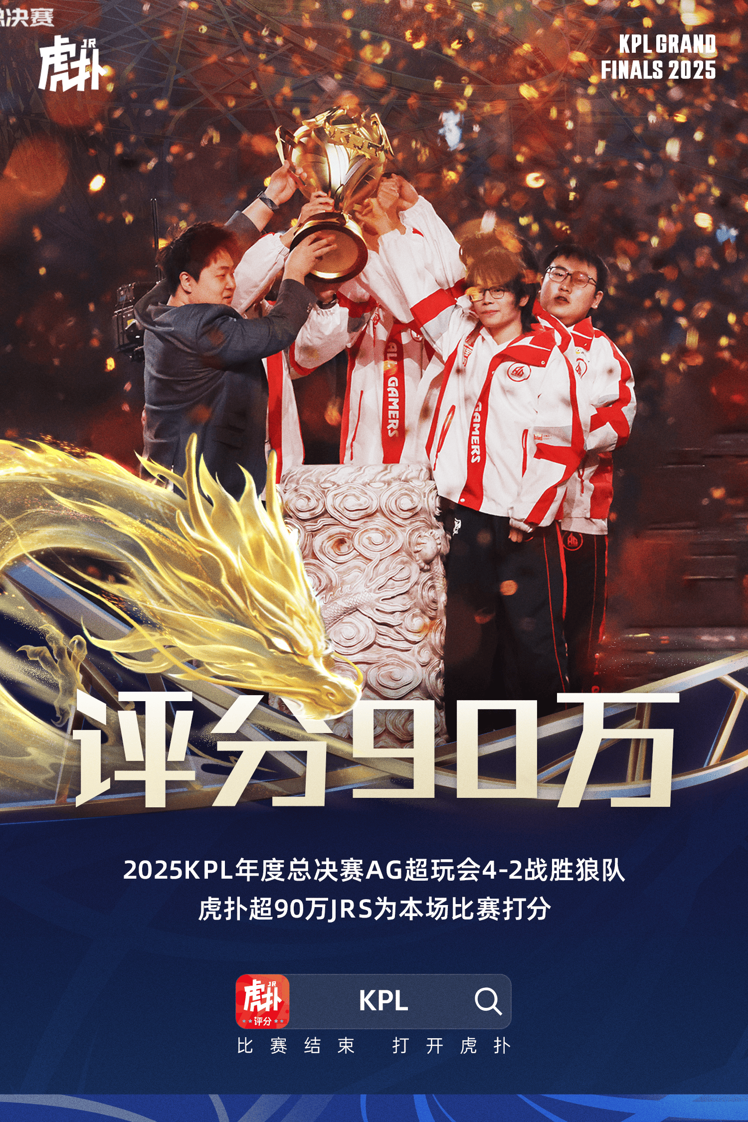 虎撲11月10日訊 在前日結束的2025KPL年度總決賽鳥巢決賽的比賽中,AG超玩會 4-2 力克重慶狼隊斬獲隊史六連冠