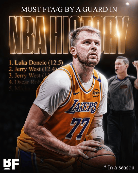 虎撲11月20日訊 今日,據美媒Basketball Forever報道,契奇球次東契奇本賽季場均罰球12.5次,季場均罰創下NBA歷史后衛單賽季罰球數最高紀錄。創下